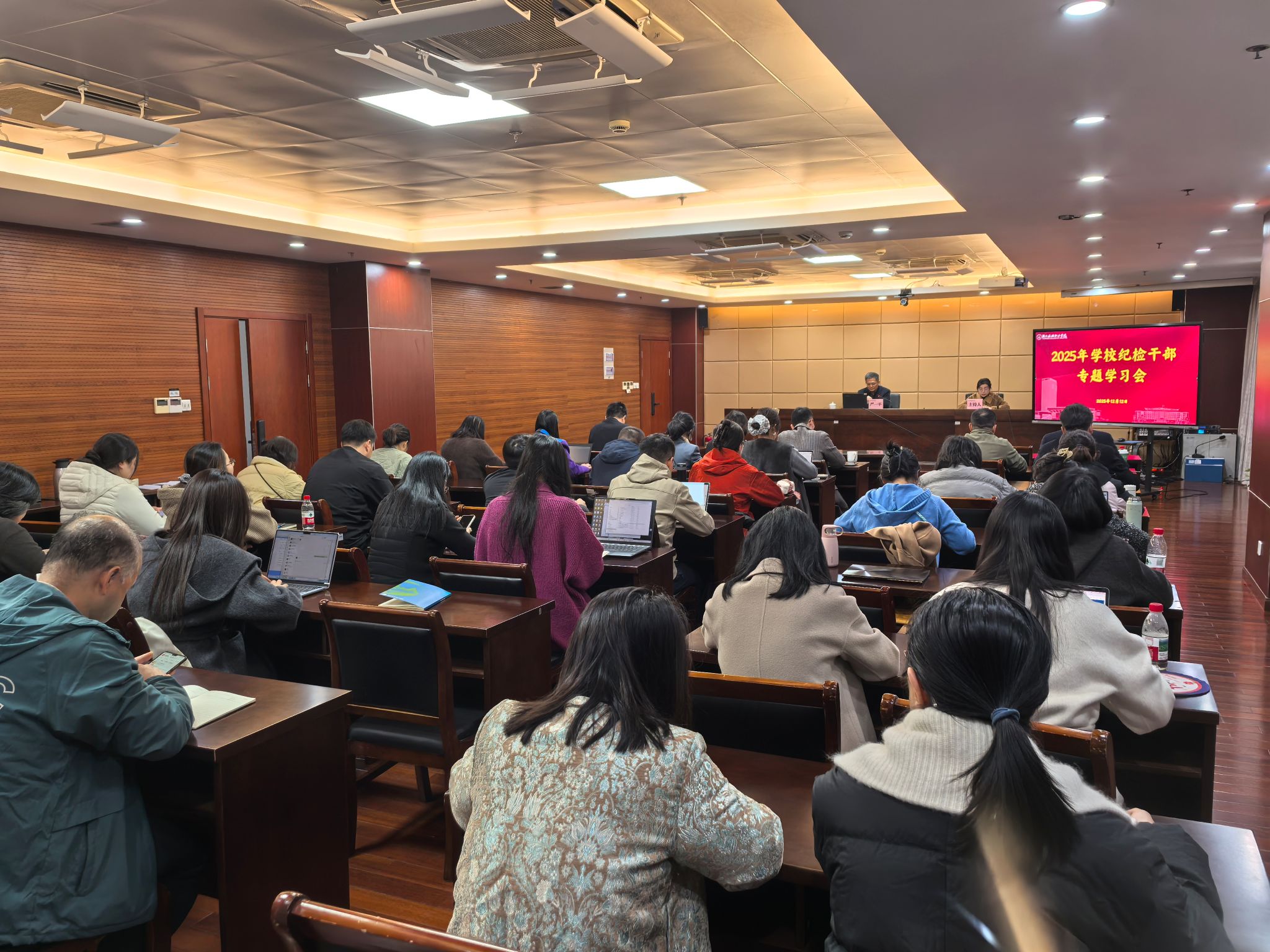 12月12日下午,学校2025年纪检干部专题学习会在勤进楼405会议室召开。校党委委员、纪委书记严一平出席会议,学校纪委委员、机关党总支、二级学院及千岛湖校区管委会党总支副书记,行政直属党支部、机关党支部、二级学院基层党支部纪检委员以及纪委办纪检干部参加会议。会议由校纪委副书记、纪委办公室主任吴盈盈主持。